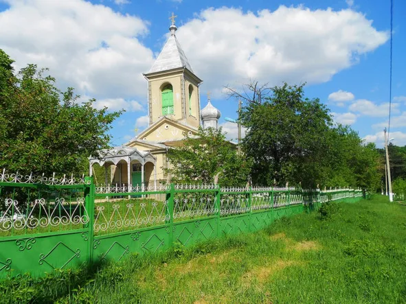 Церковь Успения пресвятой Богородицы в селе Тырнова Дондюшанского района Молдова. Насколько помню, ограды этой не было. Мы все стояли чуть ниже на дороге к храму.