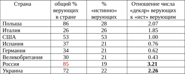 Но нельзя не признать, что, к сожалению, проведенный анализ в большей степени реальную картину состояния религиозной жизни в России и Украине.