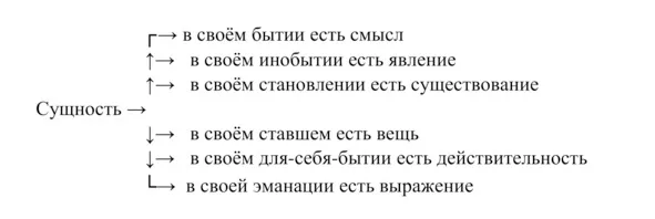 Между тем смысловое содержание слова не ограничивается его понятийной формой. Слово способно выявить себя в умной смысловой энергии, становясь ликом. В энергии смысла выявляется личностное начало всякой вещи, и утверждается оно как личность, но не в субстанциальном, а в умном (смысловом) отношении: энергия сущности явлена в имени. Имя оказывается нижней ступенью диалектической последовательности, последним уровнем инобытийности в нисходящей пирамиде символической реальности.