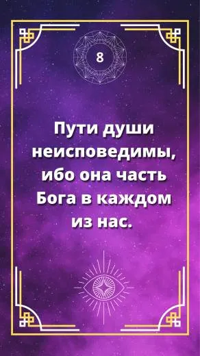 Текст сутры: Пути души неисповедимы, ибо она часть Бога в каждом из нас.
