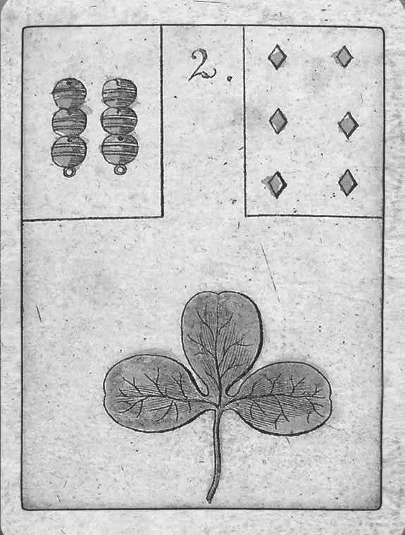 В разных колодах данная карта изображается в виде четырехлистника или обычного трехлистного клевера, на общее значение это не влияет. Клевер считается позитивным символом, связанным с плодородием, урожаем и защитой.