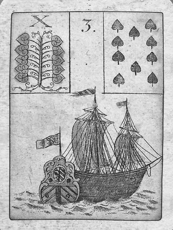 Традиционно на третьей карте изображается судно, несущееся по волнам; его паруса раздувает ветер, флаги трепещут. В карте ощущается скорость и неудержимое движение вперед. Рисунок карты ассоциируется с морским ветром и свежестью.