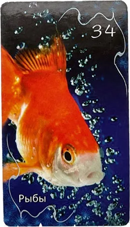 На карте изображена «золотая рыбка» в темных водах, она плывет потоке, на ее пути нет никаких препятствий. Рыба изначально воспринималась как символ воды, изобилия, свободы, удачи и эмоций.