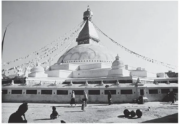 Повсюду в старой части Катманду, так же как и в соседних городах Патане и Бхатгаоне, нас окружало столько красоты и истории, что мы чувствовали себя как на поразительной выставке искусств. Особенно бросались в глаза бесчисленные ступы. Это буддийские святилища особых пропорций, содержащие реликвии. Подобно различным изображениям во многих храмах, они сооружены для того, чтобы активизировать врожденную природу Будды существ одним своим присутствием. Если вас не отпугнут от них уличные запахи и вид больных и попрошаек, то впечатление, оставшееся в уме, принесет в будущем состояния проницательности и радости.