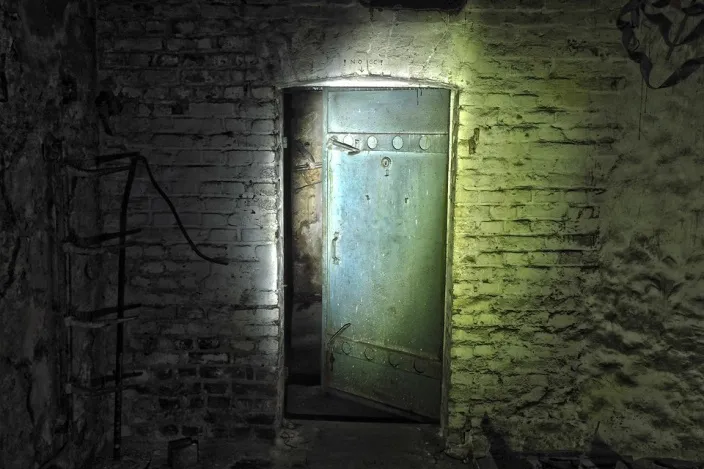 У дверей в подвал стояла заведующая общежитием. Боясь мышей, она поджидала детей на выходе из подвала.