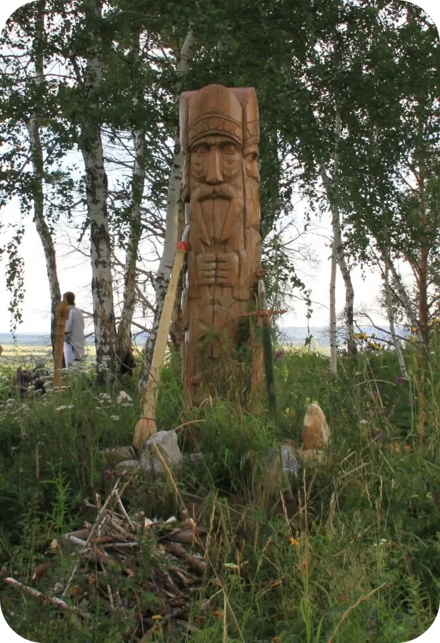 5. Лик Перуна на чуре Световита. Перед церемонией Перуна. 24 июля 2011.