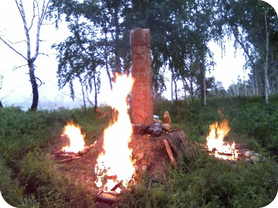 Про Перуна Виталя ещё сказал несколько слов. О том, что Перун вовсе не воинственное божество, не бог войн, агрессии, и т.п. Наоборот! Это бог жизни в её наивысшем и чистейшем виде, поэтому один из его символов – знаменитый «цветок жизни», проекция 6 сфер на плоскость. Это бог Покоя, ему свойствен глубокий покой, из которого и растёт этот цветок. Когда у человека нет этого покоя, ему недоступен этот лик Перуна (как на нашем чуре Световита), и тогда он для утверждения в жизни прибегает к войне и агрессии, т.е. обращается к другому лику Перуна, возможно, более понятному человеческой среде (как на чурах современных язычников). Первый – больше Перун как бог. Второй – больше Перун как воин. Интересно, что волна этого Покоя, или не этого, а другого какого, но покоя, накрыла меня за несколько дней до ритуала. Покоя, мира, жизни, хотелось быть в этом покое самому, и чтобы все и всё пребывали в нём. Это не было центральным ощущением этих дней, но как ещё один аспект общей палитры, могу упомянуть. Видно было, что напряжение есть, и прорывается в людях, видно было, что и Женя волнуется, переживает, в словах проскальзывало, в каких-то действиях. Ну так оно и понятно.