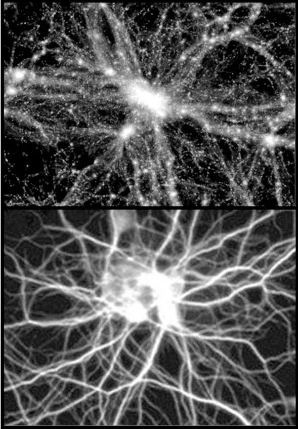 Таким образом, вся Вселенная объединена бесчисленными и устойчивыми взаимосвязями и везде работает некий закон подобия, проявляющийся как в бесконечно малом (клетки, атомы), так и бесконечно большом (галактики, чёрные дыры). Удивительно, но даже частоты вибраций нейрона и Вселенной имеют идентичные показатели. Например, здоровый человеческий мозг работает в частотном диапазоне от 4 Герц (фаза глубокого сна) до 45 Герц (высокая активность или агрессия). Разумеется, по отношению к частотным вибрациям во вселенной это соотносится, как 1:1000000, из-за различной степени строения и размеров того и другого.