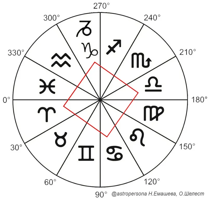 Каждый Крест содержит в себе четыре знака, объединенных общим качеством. Соединив отрезками эти знаки последовательно, получаем квадрат, диагонали которого образуют крест. Знаки на концах диагоналей попарно находятся в оппозиции, а знаки на концах сторон квадрата находятся в квадратуре.