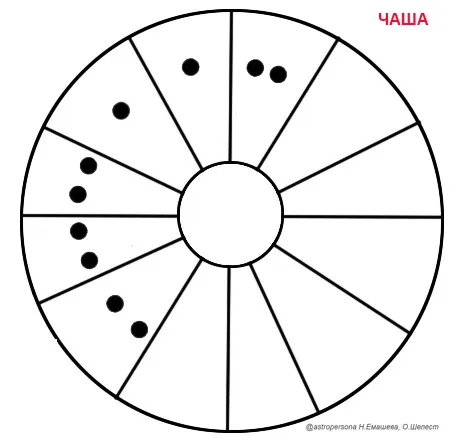 «Чаша» символизирует замкнутость, обособленность, независимость, активное накопление информации и неуравновешенность. Она способствует проявлению вспыльчивости, душевной неустойчивости, раздражительности, закомплексованности.