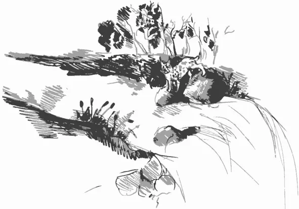 Вода в водопаде имела розовато-голубоватый необычный цвет. Так отражалось солнце в нем. Я опустила в воду руки и помочила их. Водичка была холодной. Я набрала воду в ладони и умылась. Потом я начала рассматривать водопад, стараясь запомнить его таким, чтобы потом можно было в точности зарисовать. Несколько долгих минут я с восторгом и удовольствием наблюдала, как вода падает вниз и слушала его шум. Но пора было возвращаться. На сегодня прогулка подходила к концу. Папа осведомился о моем самочувствии, я подготовилась, и начался подъем…