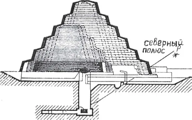 Чтобы лучше наблюдать проекции звезд, пирамиду облицовывали белыми известняковыми плитами, а с северной стороны проложили наклонный туннель – визир, направленный на северный полюс, а вся пирамида точно сориентирована по четырем сторонам света (рис. 27).