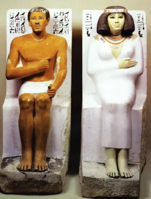 В другой мастабе принца Рахотепа и его жены Нефрет находились раскрашенные скульптуры усопших (рис. 59). И эта изумительная скульптурная группа находится также в музее Каира.