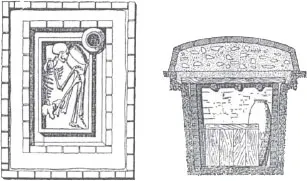 В начале первой династии мертвеца пеленали льняной тканью, помещали в деревянный гроб, а рядом обязательно ставили сосуды с едой и питьем, а также и другие предметы, чтобы покойный и на том свете мог заниматься тем же, чем и при жизни (рис. 10).