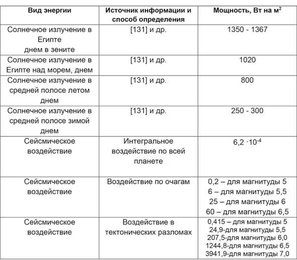 В этой табл. 7, учитывающей расположение пирамид в зоне тектонического разлома и энергетической сетки, мощность сейсмического воздействия от Земли настолько большая, что превышает мощность солнечного излучения в несколько раз!