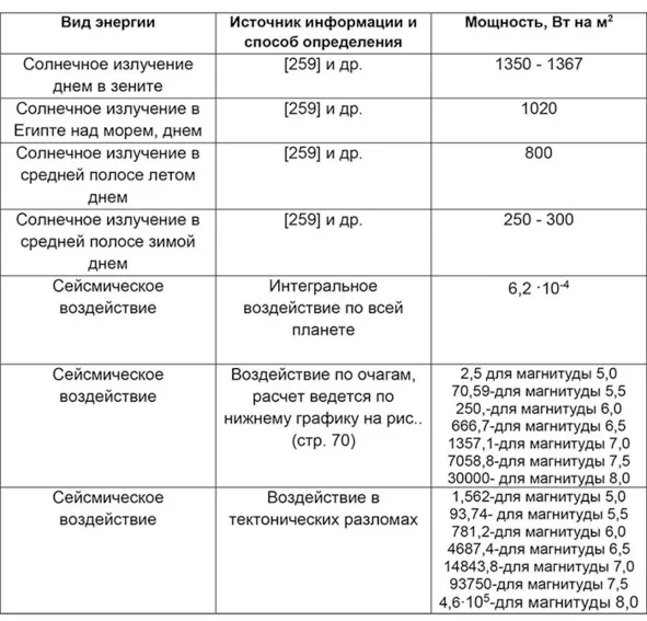 Одновременно с этим, становится понятной таблица, представляющая собой сравнение ВИЭ – возобновляемых источников энергии. Если сравнить эту таблицу с табл.5 и табл. 6 по прежним литературным данным, то очевидно, что ранее не учитывали такой мощный фактор, как энергия в тектонических разломах. По существу, эта таблица представляет собой новую возможность по использованию мощного источника ВИЭ.