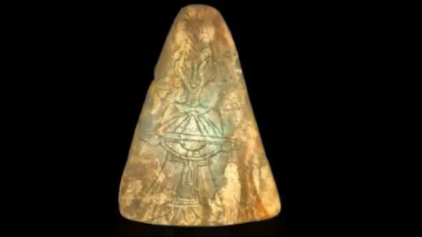 Пример 8, рис. 8. По мнению других ученых и гипотезе автора, изложенной в книге [1], пирамида Хеопса построена сразу же после Великого Потопа, произошедшего 12,5 тысяч лет назад. В основании пирамиды найдены остатки другой, более старой пирамиды. Таким образом, пирамидка, показанная на рис. 8, найденная в пещере, могла быть более древней версией пирамиды Хеопса. Если же возраст в 17 тысяч лет завышенный, то, на самом деле, не превышающим 12,5 тысяч лет, то это могла быть изображена пирамида Хеопса в те давние времена.