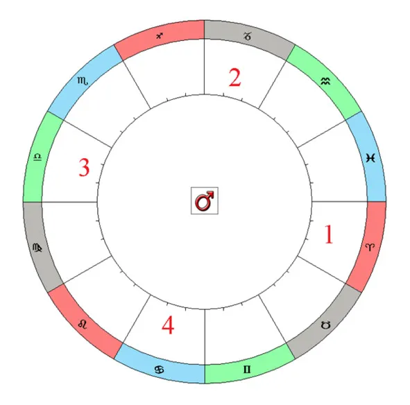 На примере зодиакального знака Овен (Рис. 008) мы наблюдаем следующие закономерности.