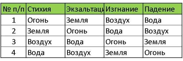 Рис. 025. Таблица. Стихии.