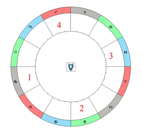 Здесь поступаем так же, как и в предыдущем расчёте Особого положения Меркурия: убираем противоречия и выбираем Зодиакальный знак, для Экзальтации в котором Меркурий имеет возвышение. В данном случае это будет знак Близнецов. Соответственно, падение Меркурия будет в Зодиакальном знаке Стрельца.