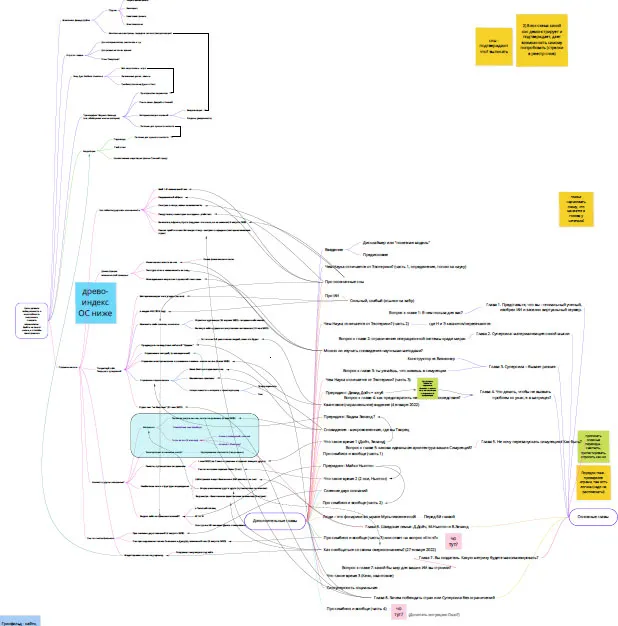 Линии здесь показывают логические связи между различными темами. Это была самая сложная в техническом плане работа, так как удержать в голове «всё, везде и сразу» – совершенно невозможно.