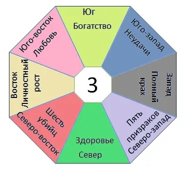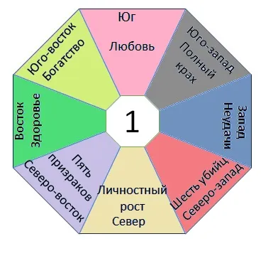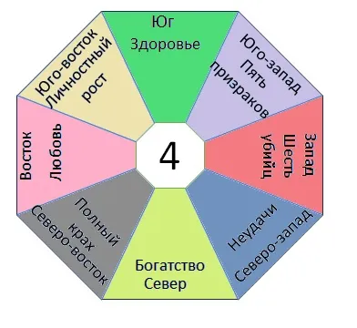 Мы видим, что у каждого числа Гуа есть четыре благоприятных и четыре неблагоприятных направления. Эти направления действуют на человека в любом помещении, в любое время на протяжении всей жизни.