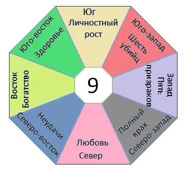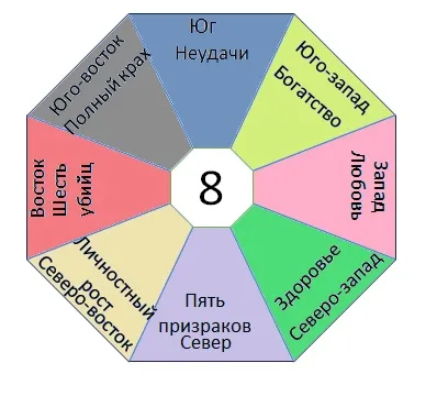 Напомню вам традиционные зоны фэн-шуй – знаменитую восьмиугольную сетку Ба Гуа: