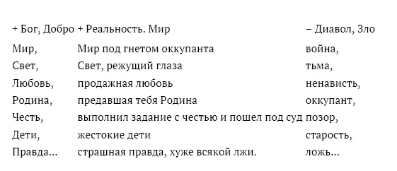 Если вы согласны, что понятия, стоящие в первом столбце таблицы мы назовем подпадающими под категории Абсолютного Добра и Бога, а в третьем столбце – под категории Абсолютного Зла (и его же назовем Диаволом), то средняя, переходная таблица как раз и будет тем самым смешением белого и черного, то есть существующим вокруг нас, физическим миром, или Реальностью.
