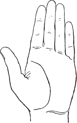 Цель идеалистов – слава, цель практических людей – богатство. Следовательно, чтобы узнать, какие наклонности господствуют у человека, надо сравнить, который из двух пальцев – указательный или безымянный – длиннее. Это сравнение легко сделать, принимая средний палец за масштаб (рис. 21 и 22).