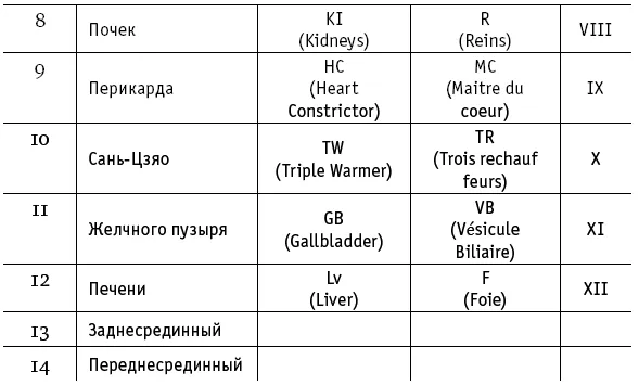Так как нас интересует применение пальцевого Ци-Гун, то нам будет полезна следующая таблица, из которой видно, что все без исключения регулярные каналы начинаются или заканчиваются на пальцах рук и ног.