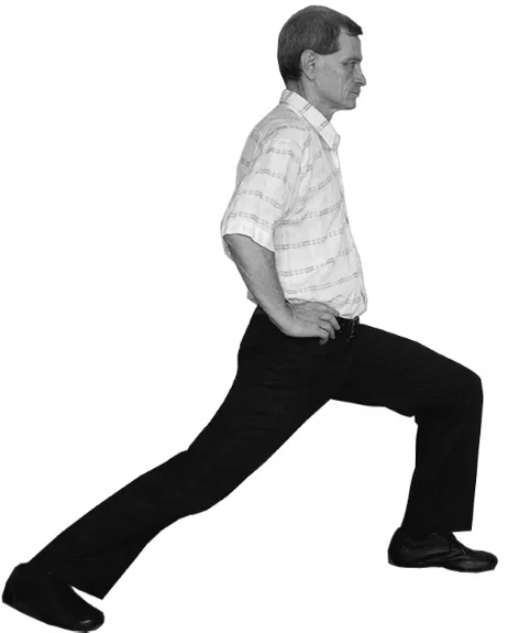 Носки чуть повернуты вовнутрь, ступни параллельны друг другу. В низкой стойке бедро согнутой ноги параллельно полу. В высокой угол сгиба подбирается по самочувствию. На фотографии показана стойка Гун-Бу средней высоты.