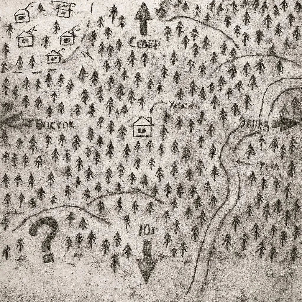 (Отрывок) Проклятая надпись, никак не смывается и зудит так, что мама не горюй. Вообще, откуда она взялась? И что означают эти цифры и буква “E01”?…(На этом, записи с важной информацией заканчиваются, дальше идет описание местности и жизни неизвестного) (В тетради, так же была вложена, нарисованная карта местности).(Конец записи)