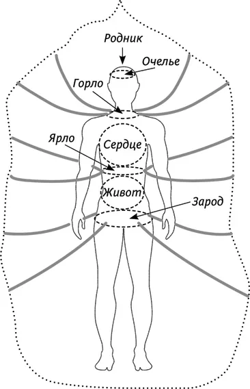 Короткие жилы также крепятся к мошне. Их переплетения в теле образуют стогны – так в колдовстве называется то, что в других направлениях именуется чакрами. Всего стогн семь. Их названия от верхней к нижней: родник, чело, горло, сердце, ярло, живот и зарод.