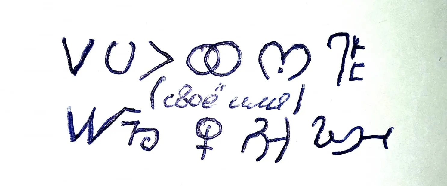 Зайдите в храм, купите 2 средние свечи и уходите. Дома нарисуйте знак перманентным маркером или шариковой красной ручкой. Зажгите свечу в одиночестве, запиской оберните вторую свечу. Подожгите первую свечу, и вспомните все свои боли, и обиды как вы были отвергнуты и т.д. Так чтоб пошли искрение слезы, капните слезу на бумажку.
