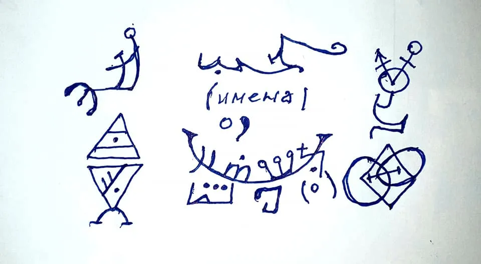 Хозяйка, то есть жена рисует столько знаков, сколько их по счету семьи, в раздел имена пишутся имена свои и детей.