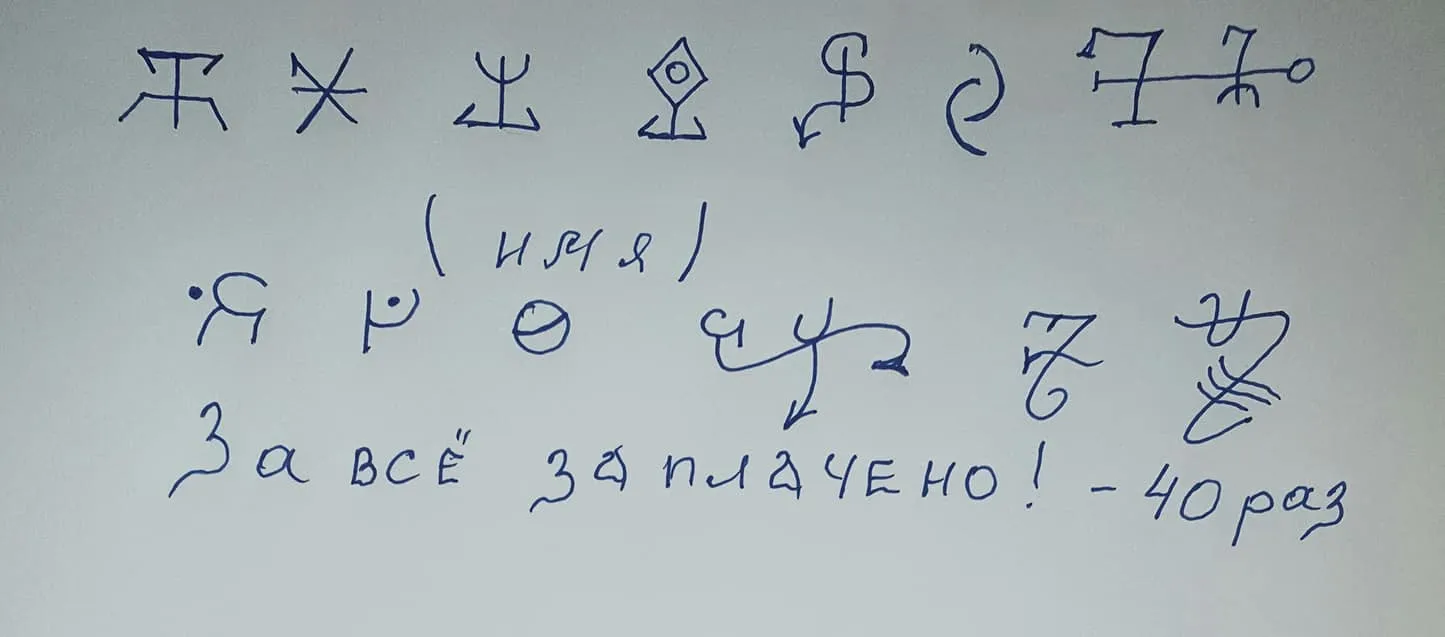 Положите 13 медных монет на лист бумаги, сожмите руками в комок. Завяжите себе руки и ноги – символически, это означает ваше состояние души, дел, бизнеса. Возьмите свёрток в руки и закройте глаза, визуализируйте ситуацию, которая вас беспокоит, людей которые причинили вам травму. Громко 40 раз произнесите фразу: «ЗА ВСЁ ЗАПЛАЧЕНО!»