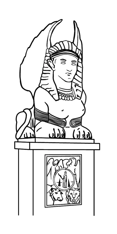 Французский художник и спиритуалист Жан Дельвиль (Jean Dellville) нарисовал по нашим указаниям эту аналитическую фигуру сфинкса таким образом.