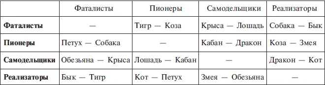 Дракон – Кабан. Дракон точно так же, как Коза и Тигр, лишен очевидных недостатков, поэтому его устремление к Кабану не идет по какой-то очевидной линии. Не случайно именно Дракон производит впечатление человека не от мира сего.