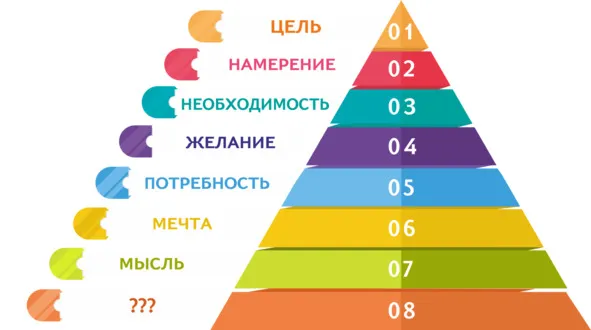 Еще раз сделаю акцент на то, что не для всех ситуаций подходит данная модель, вернее не каждое рассматриваемое понятие обязательно может приобретать ту или иную форму. Например человек с хорошим доходом, который просто захотел обновить себе авто, так как у него родился третий ребенок не мечтает о новом автомобиле, а просто с уровня намерения узнает сколько стоит автомобиль, он совсем не пишет план по достижению этой цели, так как в его случае это не цель, а просто свободное и спокойное удовлетворение потребности, как для многих из нас купить себе новый свитер.