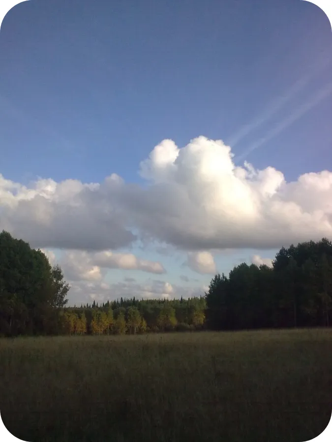 Солнце яркое, но не горячее, не жжет, а вот именно светит, и вода очень восприимчива сегодня к этому свету. По небу разливаются вширь молочные струи. Благодать неописуемая в пространстве. Берёзы меня ждут, радуются, ветер накатывает волнами. Как на берегу моря сидишь и наблюдаешь волны, только здесь ты видишь слухом. Слышно, как где-то вдалеке зарождается волна и ветер гонит её по верхушкам деревьев леса дальше, дальше, и вот она приближается, ощущение такого объёма живого, и вот она достигает твоего места, проходит над тобой и идёт дальше, а вдалеке уже зарождается следующая.