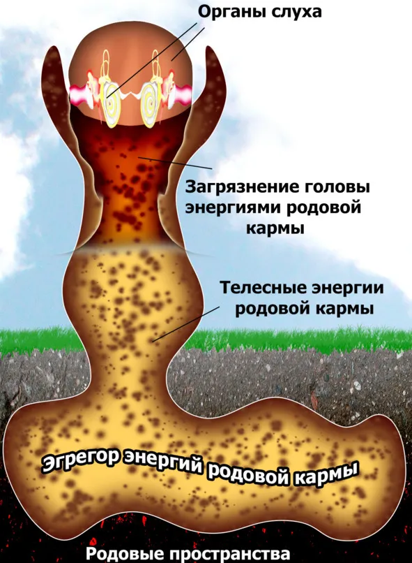 Рис.21. Телесные энергии родовой кармы на органах слуха.