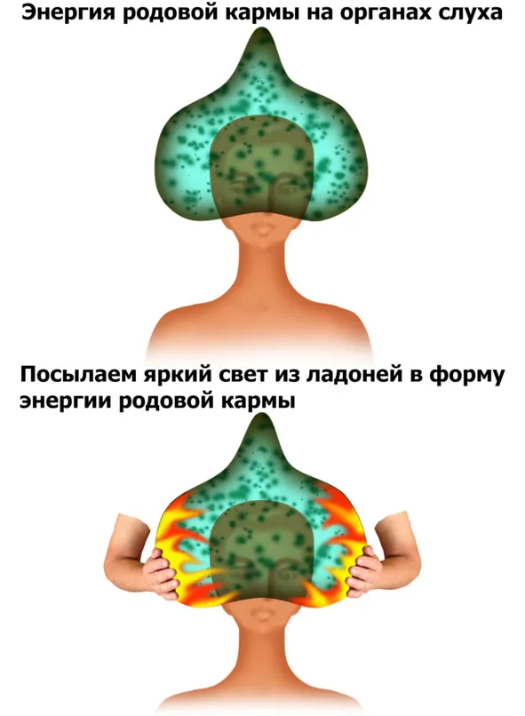Постараемся описать свойство данного вида энергий. Так устроен мир, что каждый сгусток негативной энергии является фильтром для светлых энергий Творца. В данном случае поток жизненных энергий, необходимых для органов слуха, течёт сверху вниз, втекая в голову, и перераспределяясь по всем органам. Наличие таких сгустков значительно изменяет интенсивность потока к органам, ослабляя их работоспособность. Кроме того такие энергии через свой электромагнетизм влияют на алгоритмы работы клеточной структуры, уводи их от эталонных. Это значит, что органы, подверженные влиянию данных энергий, могут быть доступны всевозможным заболеваниям, характер которых определяется наработкой человека или его Рода. В силу этих обстоятельств наличие данных энергий на голове достаточно длительное время провоцирует те изменения, которые негативно сказываются на их здоровье. Другими словами, слух ухудшается, и могут появляться всевозможные виды хронических заболеваний, включая гнойные проявления. Возможно, все это выглядит не по-научному, но в целом это ориентировочно так.