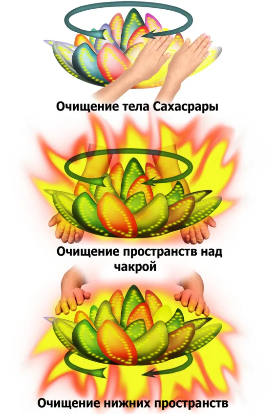 После очищения Сахасрары переходим к очищению остальных чакр. Они имеют примерно одинаковое типовое строение, и с целью пояснения процесса их очищения приведён рисунок 3.