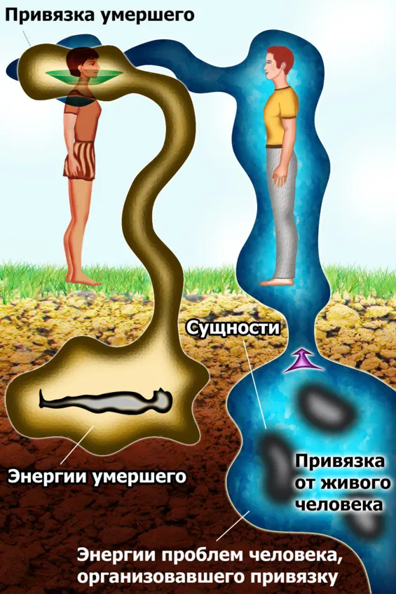 В первом этапе мы отрабатываем привязки к живым людям. Характерной ситуацией для привязок любого земного плана является то, что их можно получить практически с рождения, и кончая глубокой старостью. Любое общение между людьми, по телефону, изустно, или по любому мессенджеру несёт в себе потенциальную опасность получения таких привязок. Они могут организовываться и к чакрам, и к физическим органам тела, и к целым частям тела, рисунок 4. Всё зависит от сценария общения и тех наработок, которые имеют общающиеся люди. Итак, переходим к отработке привязок к чакрам от живых людей.