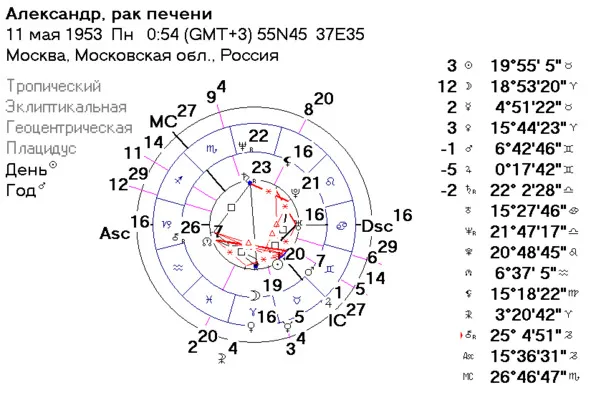 Или, например, если прогрессивная Венера является управителем 8 дома прогрессивного гороскопа и образует соединение с Солнцем, упр. 12 дома натальной карты, то высока вероятность смерти от заболевания.