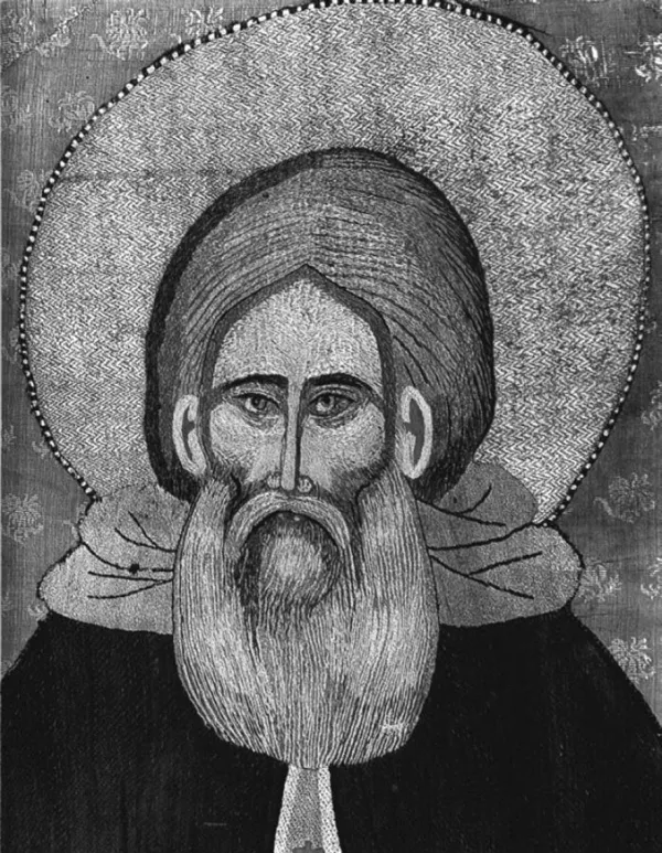 Портретной живописи во времена преподобного Сергия на Руси не существовало. Икона, если так можно сказать, – портрет духовный, не передающая в точности изображаемый лик. Предположительно незадолго до кончины Троицкого игумена лик его нарисовал основатель московского Симонова монастыря Феодор, приходившийся племянником преподобному. Возможно, этот рисунок, не дошедший до нас, стал основой шитого изображения Сергия на пелене, наиболее близкому к оригиналу. На нем, как и на иконе преподобного Сергия, написанной, по всей видимости, кем-то из его учеников в XIV–XV столетиях, у Сергия близко посажены глаза, а в лике, как тонко подметил писатель Дмитрий Балашов в своем историческом романе «Похвала Сергию», «есть нечто лесное: худоба щек, потаенная, словно спрятанная улыбка, густая шапка волос, видимо, не поредевших в старости. Вглядываясь в это изображение, начинаешь понимать, что… праведник мог быть и чрезвычайно строг, но мог и очень по-доброму улыбаться, сохраняя все тот же отстраненный „потусторонний“ взгляд человека, „перешедшего грань“ и взирающего на современников „оттуда“».