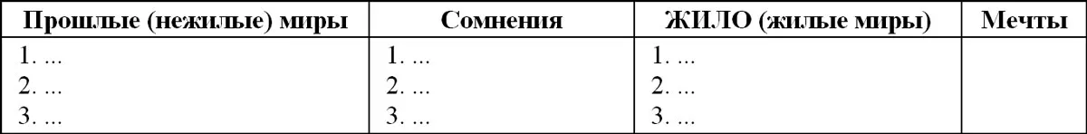 Жилые миры – это то, чем ты живешь. Мир работы. Мир дома. Мир увлечений. Есть что называется, для души. Скажем, мир увлечений – рыбалка. А есть для отдыха магазин «Бижутерия»? Или к подружке сбегать потрепаться? Что угодно. Просто увидьте, что все, что занимает какое-то время вашей жизни, есть некий мир.