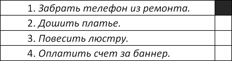 Следовательно, все выявленные помехи уюту должны быть устранены, даже если это непросто. Но в этом и есть смысл жизни. Поэтому необходимо подумать, сделать из них задачи и решить так или иначе. После этого стоит создать список хвостов и долгов.