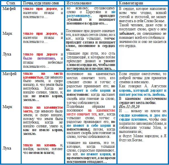 Настоящую притчу Христос предлагает для укрепления и наставления учеников Своих, чтобы они не унывали, хотя и большинство приемлющих слово их погибнут. То же было и с самим Господом; и хотя Он наперед знал, что так именно будет, не переставал однакож сеять.
