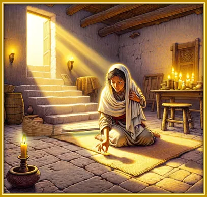 не зажжет свечи и не станет мести комнату и искать тщательно,
